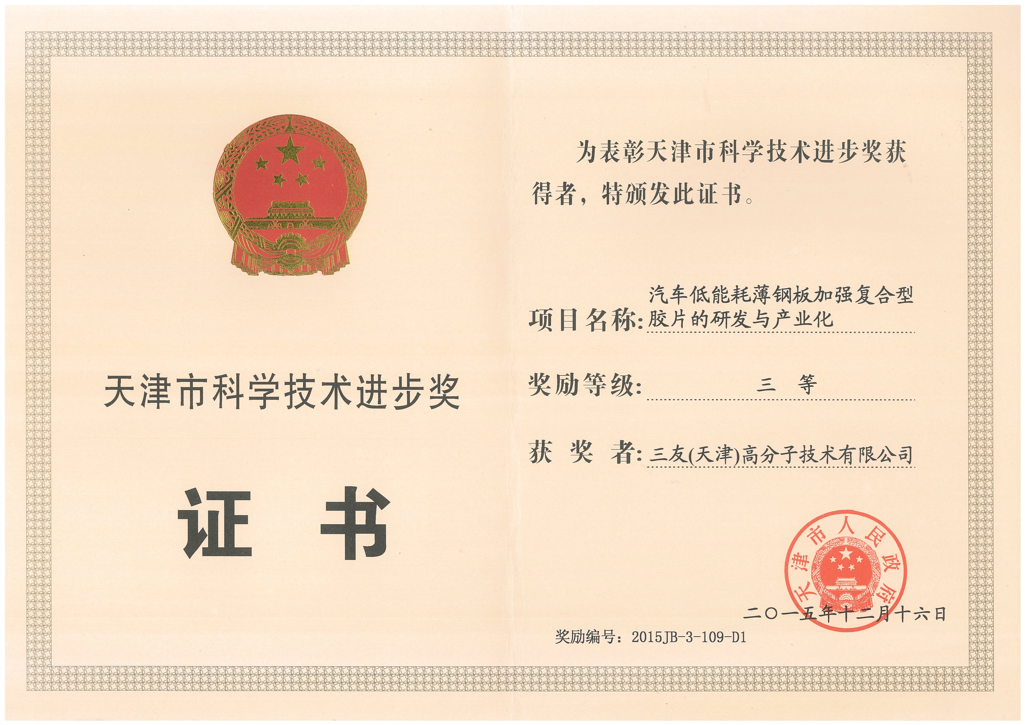 2016天津市科技進步獎