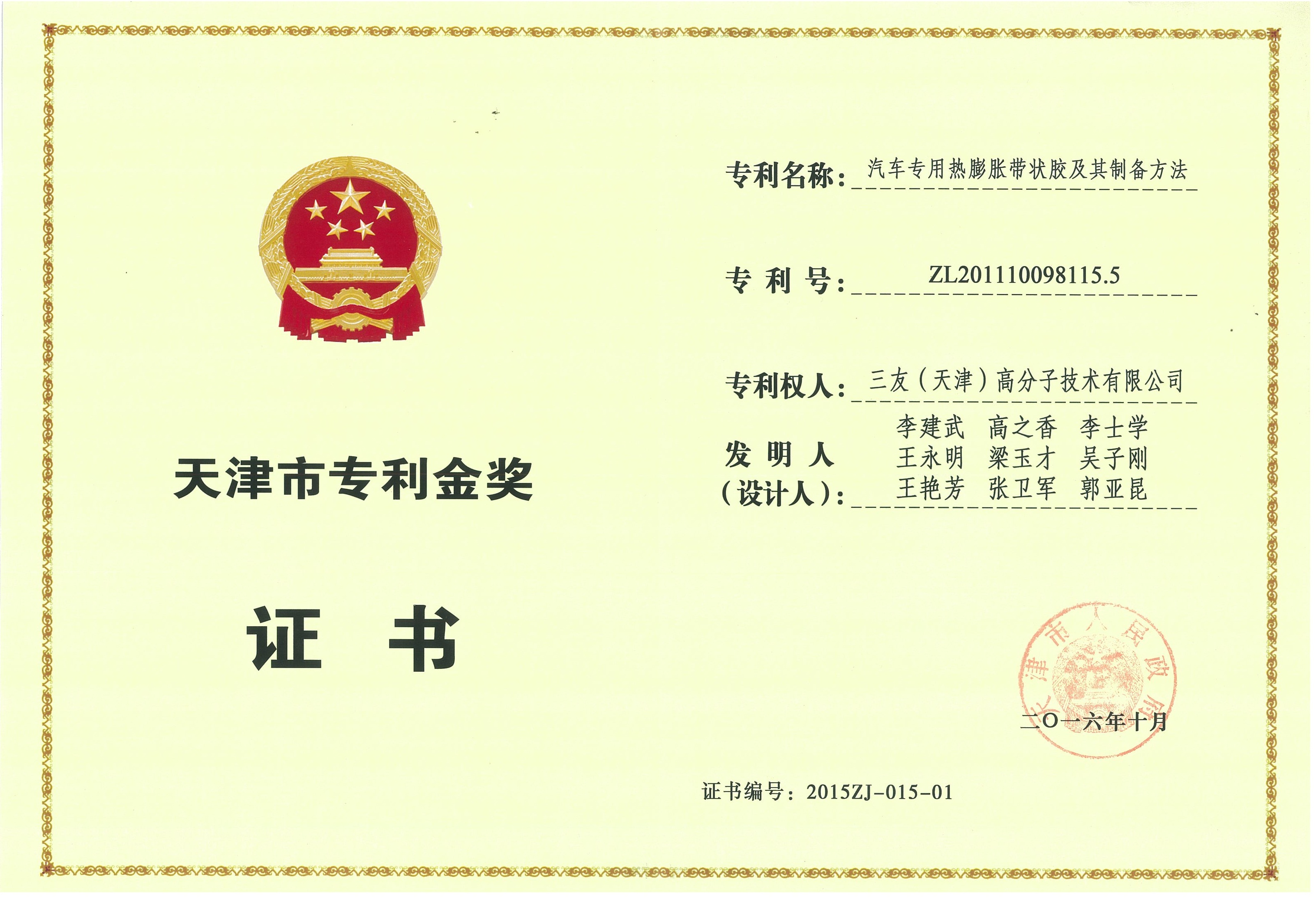 天津市專利金獎